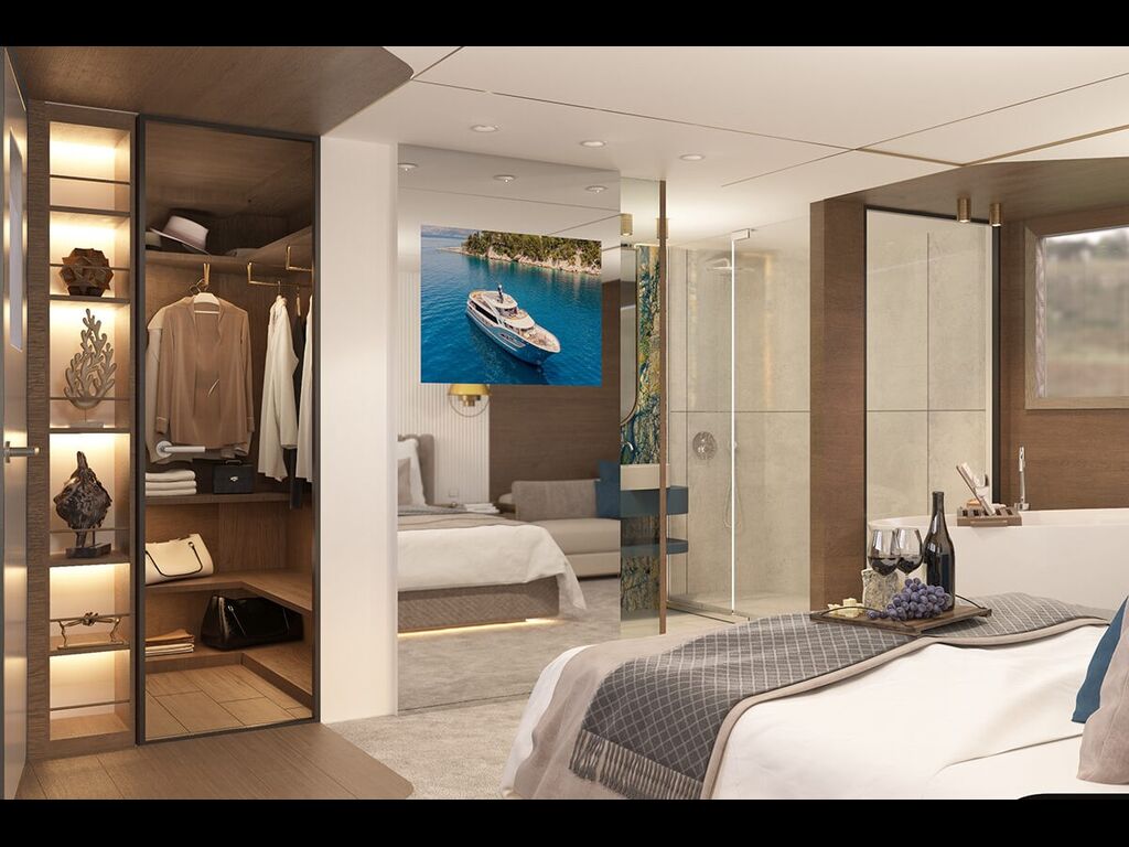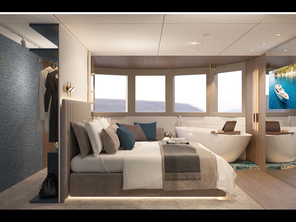 Measuring 47.9 meters in length and over 8 meters in beam, Bella offers a generous layout ideal for large groups. With a capacity of up to 21 guests in 10 luxurious cabins, this gulet combines traditional elegance with modern amenities. Highlights include a sundeck Jacuzzi, Jet Ski, and SeaBob for the ultimate onboard experience.