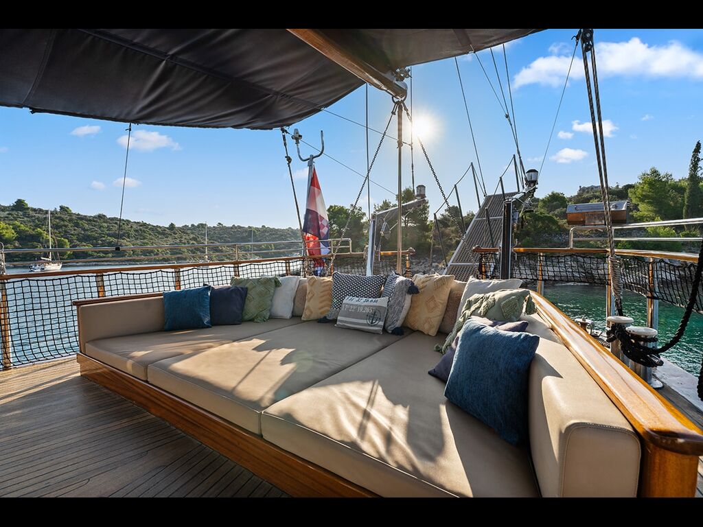 Gulet Love Story is a 43-meter luxury sailing yacht launched for the 2021 charter season in Croatia. Owned by the respected Trgo family as their third luxury vessel, Love Story combines elegance, comfort, and high-performance sailing. Featuring an impressive 110 m² flybridge with a Jacuzzi and multiple lounge spaces, the yacht offers exceptional open-air leisure and relaxation. Accommodating up to 12 (+2) guests in 6 premium cabins, it is an ideal choice for a memorable Adriatic sailing experience.